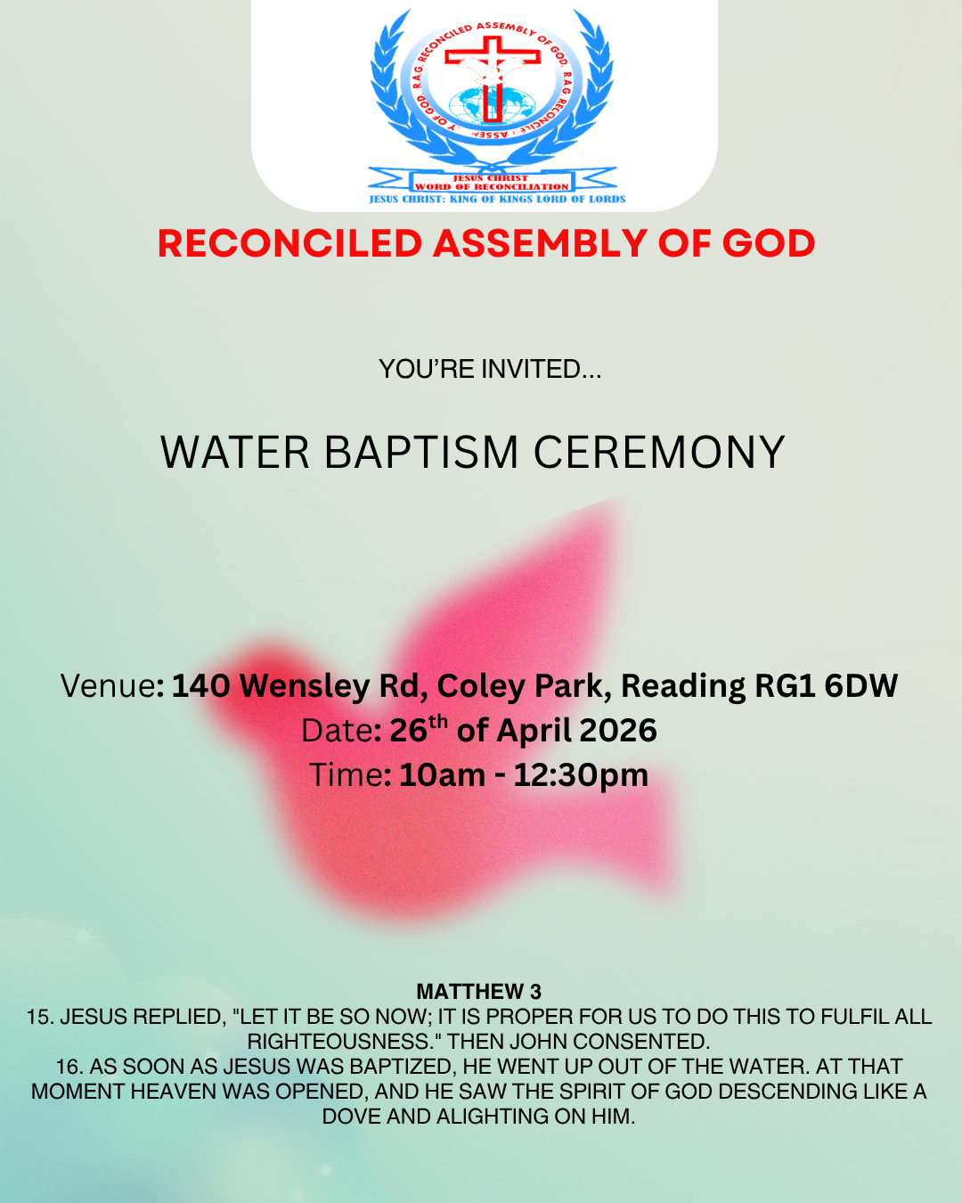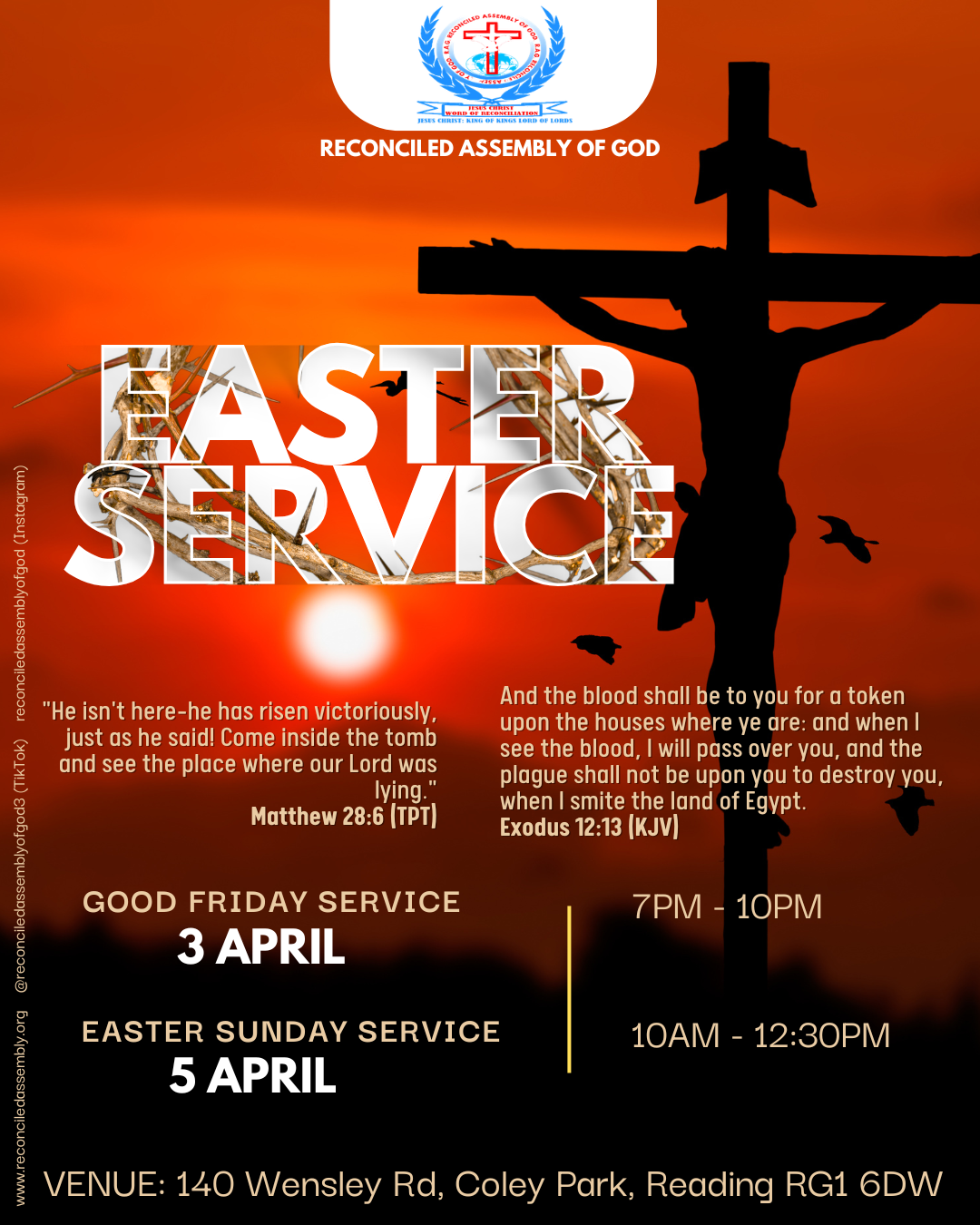 Join us for Worship every Sunday from 10 am - 12:30 pm at Coley Park Community centre, Reading, RG1 6DW to experience fellowship and Spiritual Growth. We look forward to welcoming you.